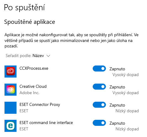 4. Spravujte aplikace, které potřebujete při spuštění