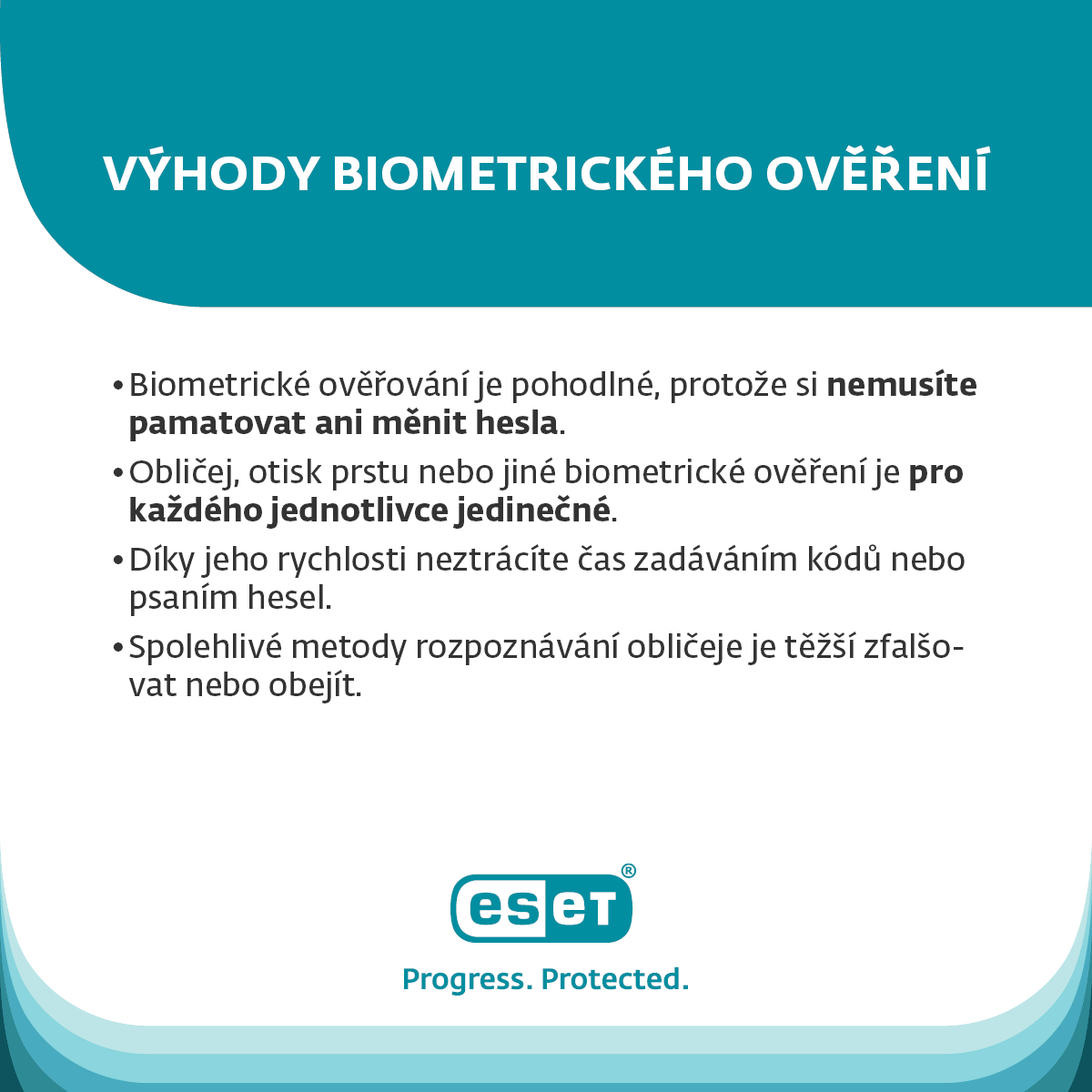 Pro mnoho z nás již není ověření naší totožnosti pomocí otisku prstu nebo rozpoznáním obličeje nic neobvyklého. Ostatně nástroj, který naši totožnost ověří a umožní nám díky tomu provést celou řadu operací, nosíme všichni po kapsách. A chytré telefony toho dnes dokážou daleko víc – rozpoznají nejen rysy obličeje a otisky prstů, ale také náš hlas, spánkový režim, srdeční tep a frekvenci dýchání.